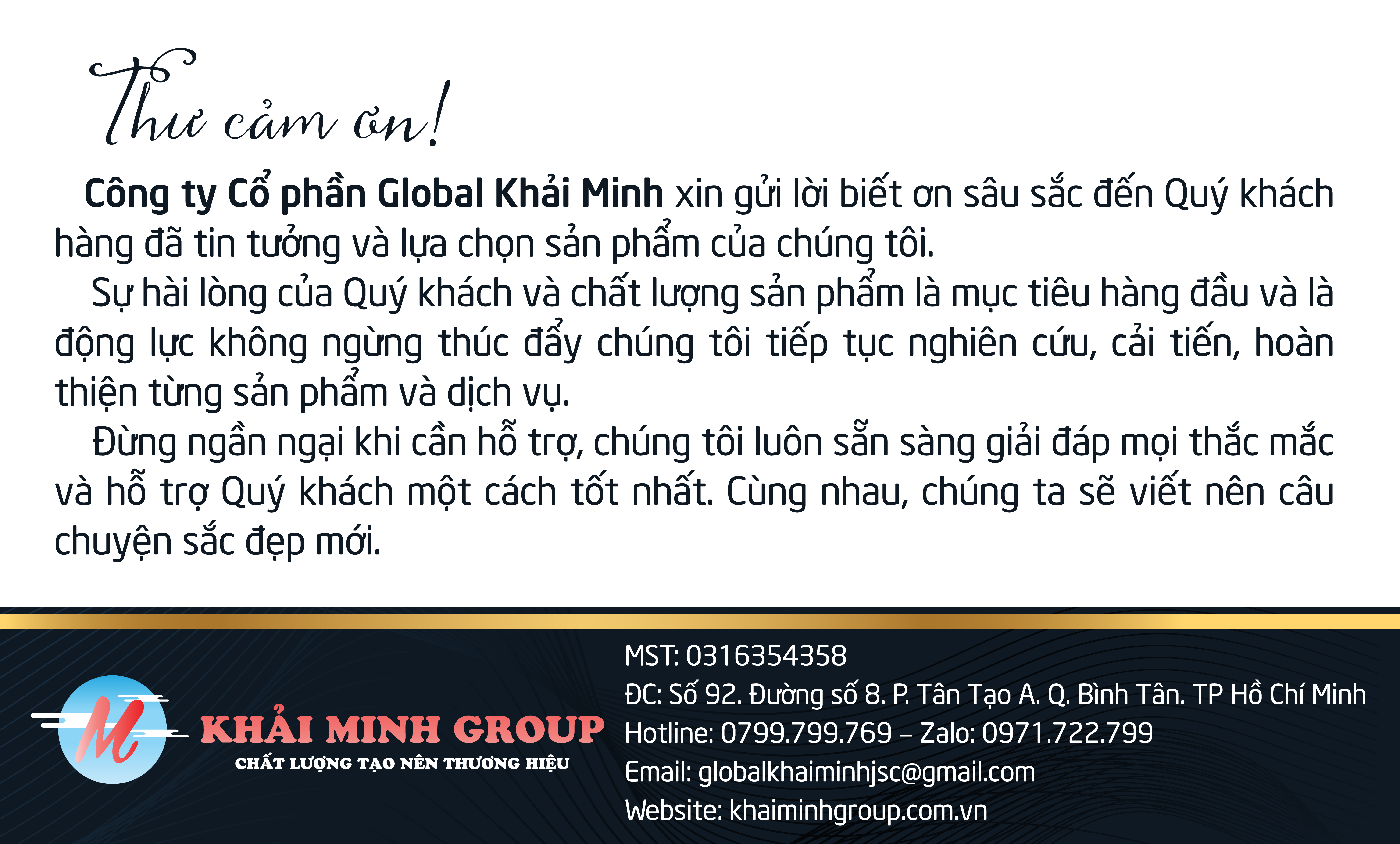 Đơn hàng của quý khách đã đặt thành công & đang trong quá trình xử lý. Đội ngũ của Globak Khải Minh sẽ liên lạc lại với quý khách để hỗ trợ đơn hàng.